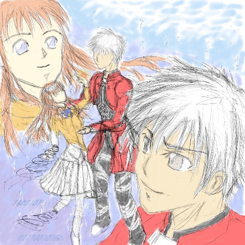聖杯が伝えてきた英霊エミヤの過去の姿と髪を下ろした目の前のアーチャーの姿が一致したことを確かめて、私は自分の声(召還の呼びかけ)を聞いてくれた人がこの人であったことを嬉しく思った。