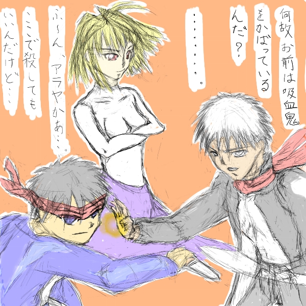 魔術師としての俺は、むしろ、この青年はこの吸血鬼に魅せられ、使い魔として動かされているようにも見えた。魔術の中には、視線だけで相手を魅了して思いのままに操る類のものもある・・・と遠坂から聞いたことがあったから。